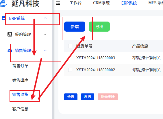 【ERP系统】->【销售管理】->【销售退货】->【新增】