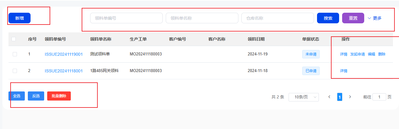 【添加生产领料单】
